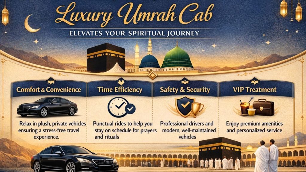 The pilgrimage of Umrah involves worshipping and meditating, and it promotes mental peace. The Umrah experience of an individual is likely to be greatly influenced by the quality of the pilgrimage. To define and limit the place and scope of using the airports, hotels, and sacred places of Makkah and Madinah merely as transportation would be misleading. That is what we need for a single function: comfort, reliability, privacy, professional. This is where luxury Umrah cab services come in. To pilgrims who are used to comfort and travelling without stress, LuxuryUmrahCab.com will have a high-quality transport experience that will make the Umrah an addition to its sacredness. Whether in our modern motor vehicles and with trained drivers, or in personal travel and choice of destinations, our luxury cab will make each journey an experience of tranquility, respect, and smoothness, allowing you to devote yourself to worship. The reason why Luxury Transport is important during Umrah. Umrah means physical activities of long walking, standing, and rituals, which demand energy and patience. Having performed Tawaf and Sa’i, pilgrims should be offered to travel in a manner that will help them to relax and spend some time on the rest. Luxury transport provides: Spacious and comfortable seating Smooth, quiet rides Reliable air-conditioning Professional, respectful service Whether traveling from Jeddah Airport to Makkah or between Makkah and Madinah , luxury cab services transform long journeys into peaceful experiences. What Makes LuxuryUmrahCab.com Different? At LuxuryUmrahCab.com , we specialize in high-end Umrah transportation for pilgrims who expect excellence at every step of their journey. Our Core Promise: Comfort Privacy Reliability Premium Service Every detail is designed to meet the expectations of families, elderly pilgrims, VIP travelers, and international guests. Premium Vehicle Fleet for Seamless Travel Our luxury car fleet will be developed to provide a smooth, comfortable, and elegant Umrah travel experience. Luxury sedans and spacious SUVs, executive vans, all these are recent vehicles, well air-conditioned, and well-maintained. Our fleet is also fitted with plush seats, good leg-room, and no noise and disturbance in the interiors, so that the experience of travelling between Makkah and Madinah is smooth and hassle-free. Luxury Sedans – Elegant & Private Travel Ideal for solo pilgrims and couples, luxury sedans offer: Smooth performance Quiet interiors Comfortable leather seating Perfect for airport transfers and direct city travel. Luxury SUVs – Ultimate Comfort for Families Our luxury SUVs provide: Extra legroom Superior suspension Strong air-conditioning Recommended for families, elderly pilgrims, and travelers with extra luggage. Executive Vans – Group Comfort with Luxury For small groups, executive vans offer: Spacious seating Premium interiors Cost-effective luxury Ideal for families traveling together without compromising comfort. Seamless Travel Between Makkah and Madinah The journey between Makkah and Madinah is approximately 450 km and can take up to 6 hours . With LuxuryUmrahCab.com, this long journey becomes smooth and relaxing. We ensure: Planned routes Flexible prayer and rest stops Calm, professional driving On-time arrival Your journey remains uninterrupted and comfortable throughout. Professional Chauffeurs Trained for Umrah Travel Our drivers are more than chauffeurs; they are trained professionals who understand Umrah travel requirements. They provide: Polite and respectful service Knowledge of Umrah routes Assistance for elderly pilgrims Safe, steady driving Every journey reflects professionalism and care. Private Luxury Transport – No Sharing LuxuryUmrahCab.com offers 100% private transport only . Benefits include: Complete privacy No waiting for others Personalized travel experience Your journey remains peaceful, exclusive, and dignified. Flexible Scheduling & Prayer Stops We understand that Umrah travel requires flexibility. Our services allow: Prayer stops Rest breaks Refreshment pauses Travel at your pace, not on fixed schedules. The reason why High-End Pilgrims prefer LuxuryUmrahCab.com. The discerning pilgrims believe LuxuryUmrahCab.com to be a level of luxurious comfort, exclusive travelling at a personal level, and individualized service. Our fleet of deluxe cars and our professional drivers provide the best Umrah transportation trip without being compromised. Premium vehicles Private luxury travel Trained chauffeurs Flexible scheduling Transparent pricing 24/7 customer support We have pilgrims who are quality-conscious. Routes Covered Jeddah Airport to Makkah Jeddah Airport to Madinah Makkah to Madinah Luxury Ziyarat tours Every route is planned with precision and comfort in mind. Easy & Secure Booking Process Visit LuxuryUmrahCab.com Select your route and vehicle Choose date & pickup location Confirm booking Our support team is available anytime. Frequenty Asked Question What is an Umrah cab service, a luxury one? Umrah cab is a luxury cab service that offers luxury cars, personalized traveling, and professional chauffeurs to the Umrah multilocular pilgrims. It is oriented towards comfort, privacy, and a comfortable ride between sacred cities and airlines. Will luxury cabs be appropriate with old pilgrims? Yes. Luxury SUVs and executive vans have spacious seating, smooth suspension, and comfort features hence useful to the elderly pilgrims and those who require a relaxed ride in a vehicle. Is the luxury Umrah transport individual? Absolutely. Anything that LuxuryUmrahCab.com offers in terms of services is fully exclusive, and none of the services is shared with strangers, so one can enjoy the travel experience in peace and calm. Will you please ask for prayer or rest stops? Yes. Prayer and rest stops can be requested, so pilgrims can travel without being in a hurry and feeling uncomfortable. Why same as ordinary cabs? LuxuryUmrahCab.com provides 
